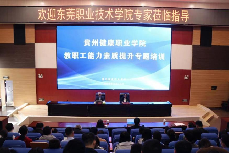 4月10日,王志明处长和陈路副教授为贵州健康职业学院教职工开展能力素质提升专题培训。王志明处长从机遇与挑战、守正与创新两个方面,结合自身多年的教育教学管理经验,深入浅出地讲解了如何在挑战中写好职教高质量答卷。陈路副教授以“三教”改革解读为切入点,分享了我校在护理专业群建设、教师教学能力大赛等方面的经验。
