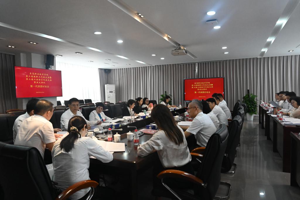 随后,全体代表分成五个组别就会议报告进行了讨论、审议,代表们充分行使民主管理的权利,献计献策,提出了一系列建设性的意见和建议。学校领导全程参与了讨论和审议。下午,主席团会议听取各代表团分组讨论情况,审议了各项草案并提交大会表决。