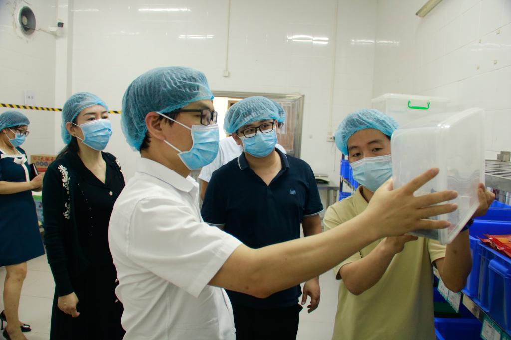 检查组首先深入学生宿舍区,认真检查了宿舍的卫生状况、通风情况以及是否存在漏水等安全隐患。随后,检查组一行来到食堂,重点检查了厨房的卫生条件、食材的保存与加工过程,菜品的制作质量等情况。蔡东宝副书记现场询问了饭堂管理人员关于食品采购、储存、加工及留样等方面的具体措施。