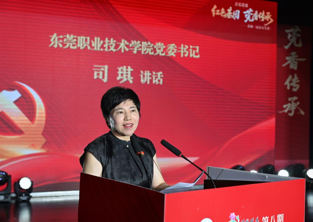 访谈结束后,学校党委书记司琪作总结讲话。司书记表示,此次音乐党课通过讲述党史故事、表演莞香制作、与莞香文化传承者对话等形式,将党的理想信念、价值追求通过东莞的城市精神体现出来,让红色基因在莞香文化的熏陶下更加深入人心。她指出,作为党员干部,要永葆“赶考”的清醒,大力弘扬伟大建党精神,把红色基因转化为真抓实干、开拓创新的实际行动,在学校改革发展的新征程上砥砺前行。作为教育工作者,要争当育人先锋,把习近平总书记关于教育家精神的重要论述转化为“为党育人、为国育才”的具体实践,落实好立德树人根本任务,服务好学生成长成才。她希望同学们在红色文化和东莞精神的滋养中,立大志、明大德、成大才、担大任,坚定理想信念,练就过硬本领,在技能成才、技能报国的赛道上跑出最好成绩。