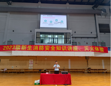 10月9日晚上,松山湖消防救援大队谢天斌为我校2023级新生进行消防知识培训,各二级学院副书记、辅导员、保卫处工作人员和2023级全体新生3000余人参加培训。