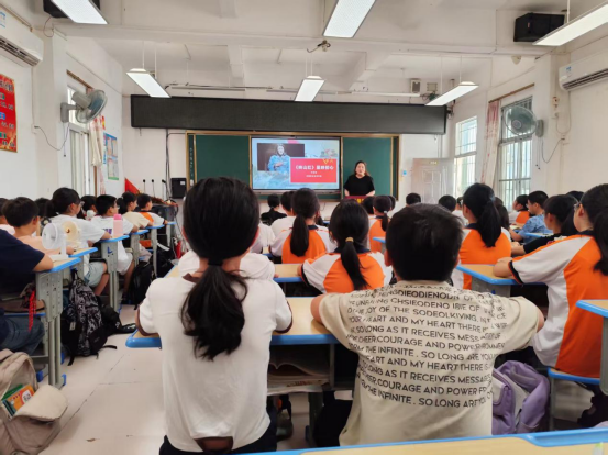 李安琦老师以电影《闪闪的红星》里面脍炙人口的主题曲《映山红》为线索,将歌曲的背景、旋律、歌曲背后的拥军故事有机串联,将同学们的思绪带回到了土地革命战争时期在农村根据地红军浴血奋战、苏区人民积极支持、军民鱼水情深的历史情境中探寻中国共产党人的初心。在课程的收尾阶段,李安琦老师寄语卓豪小学的同学们在新时代中国式现代化的征程中要不忘党恩、童心向党,以优异的成绩早日成为德智体美劳全面发展的社会主义建设者和接班人。