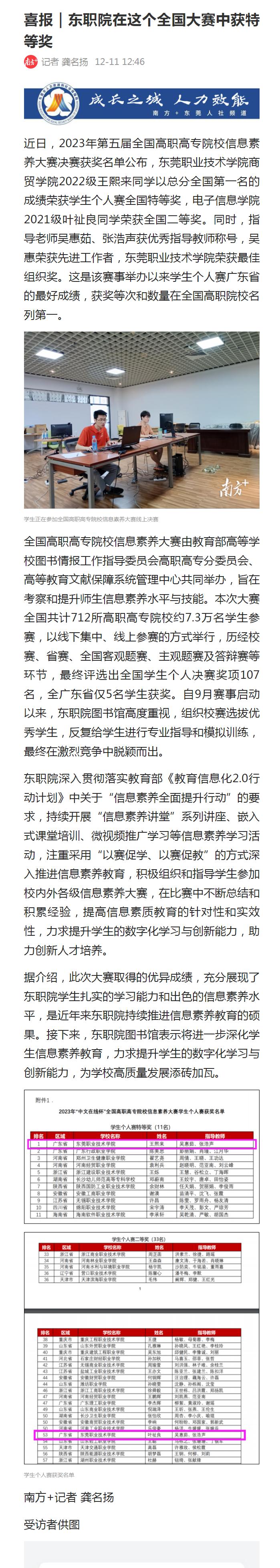 【南方+】喜报|东职院在这个全国大赛中获特等奖